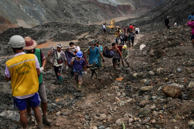 The disaster – the worst in memory to strike Myanmar’s notoriously dangerous jade mines – occurred on Thursday when a hillside collapsed in heavy monsoon rains in Hpakant, in Kachin state near the border with China.