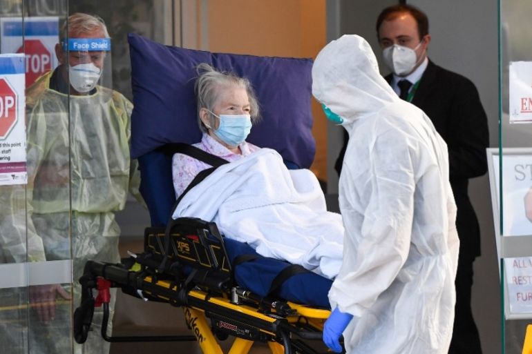 At one of the worst-hit facilities, Epping Gardens, an ambulance was seen on Wednesday taking away the body of one of the deceased residents, while health workers stretchered other masked residents to waiting ambulances for transfer to hospital.