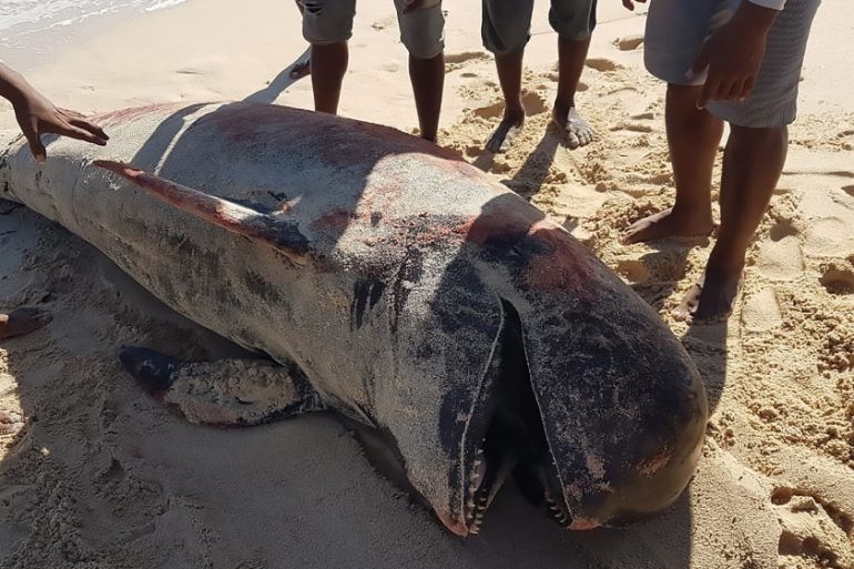 The marine mammals, ranging from 2-6 metres in length, were found in the province of East Nusa Tenggara.