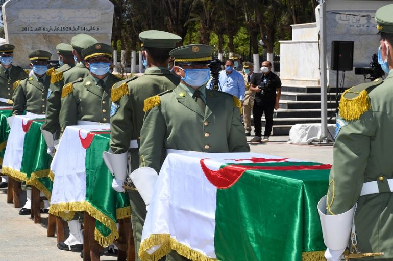 Coffins draped with the national flag were lowered into freshly dug graves in the Martyr’s Square of Algeria’s largest burial ground, alongside national heroes such as top revolt leader Emir Abdelkader.