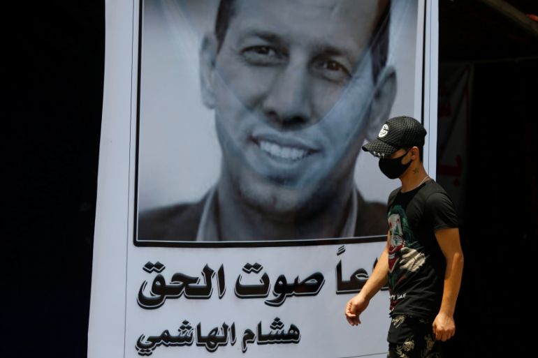 On Tuesday, many activists who took part in the mass anti-government protests that dwindled as the coronavirus pandemic spread, participated in a demonstration and vigil in al-Hashemi’s honour at Baghdad’s Tahrir Square.