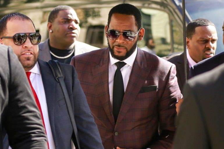 R&B singer R Kelly, centre, has pleaded not guilty to dozens of state and federal sexual misconduct charges in Illinois, Minnesota and New York [File: Amr Alfiky/AP Photo]