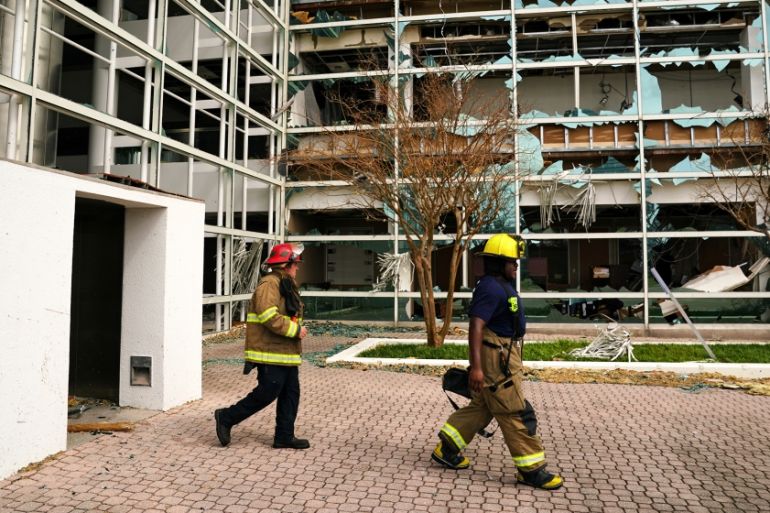The windows of the city’s 22-floor Capital One Tower were blown out, street signs were toppled and pieces of wooden fence and debris from collapsed buildings lay scattered in the flooded streets, video footage shared on social media showed.