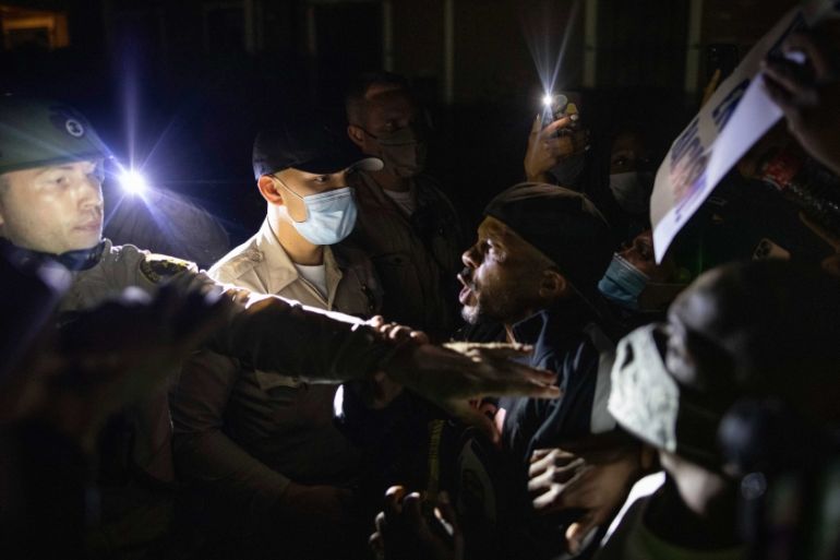 Protesters gathered at the site of the shooting and more than 100 people marched to a sheriff’s station, demanding justice. Some chanted “say his name” and “no justice, no peace”, the Los Angeles Times reported.