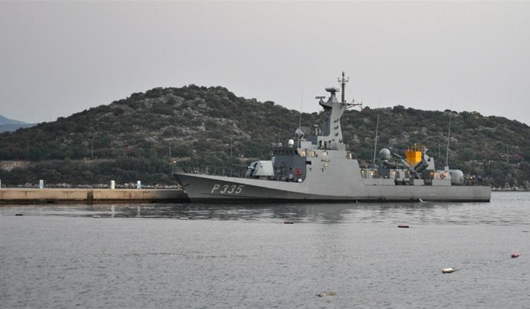 Kas, Turkey – Just beyond the luxury yachts and before the beach club hotels, lies a small Turkish warship in Kas Marina. Docked here on some days and patrolling the seas on others, it is just one sign of an unusual summer on the country’s southern coast.