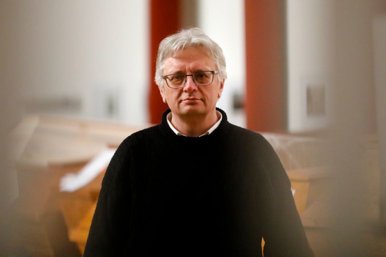 On the cobblestone square, Matthias Huth tends a lone food truck outside his shuttered restaurant. He defends those who have questioned the government’s COVID-19 restrictions, but says scepticism should not justify denial.