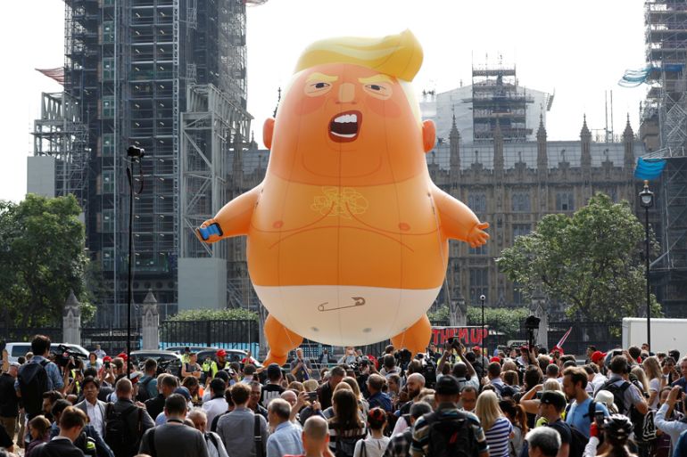 The blimp flew outside the Houses of Parliament on July 13, 2018, when thousands of demonstrators crammed the streets of central London to protest against Trump’s visit to the capital.
