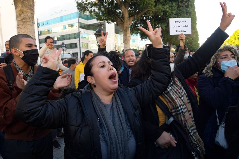 In Tunis, protesters – many of them students – shouted slogans from the country’s 2011 revolution, including “freedom, work, national dignity”, as they moved along the capital’s arterial Habib Bourguiba avenue.