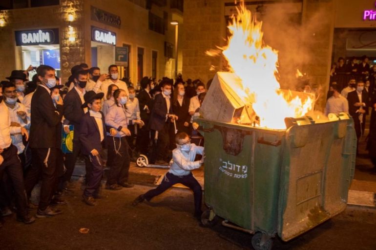 Sunday’s clashes were the latest incident of heightened tensions over enforcement of lockdown rules in ultra-Orthodox neighbourhoods in Israel.