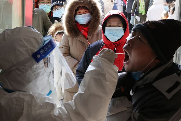 Footage from state broadcaster CCTV showed residents being swabbed by medical workers in hazmat suits at community centres in Shijiazhuang while queues outside stretched around the block.