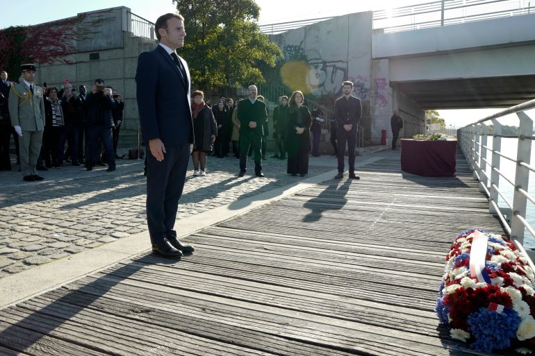 Macron, the first French president to attend a memorial ceremony for those killed, observed a minute of silence in their memory at the Bezons bridge over the Seine on the outskirts of Paris where the protest started.