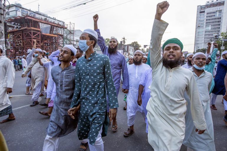 The incident came a day after some 10,000 protesters – many of them carrying banners of Islamist political parties – took to the streets outside Dhaka’s main mosque.