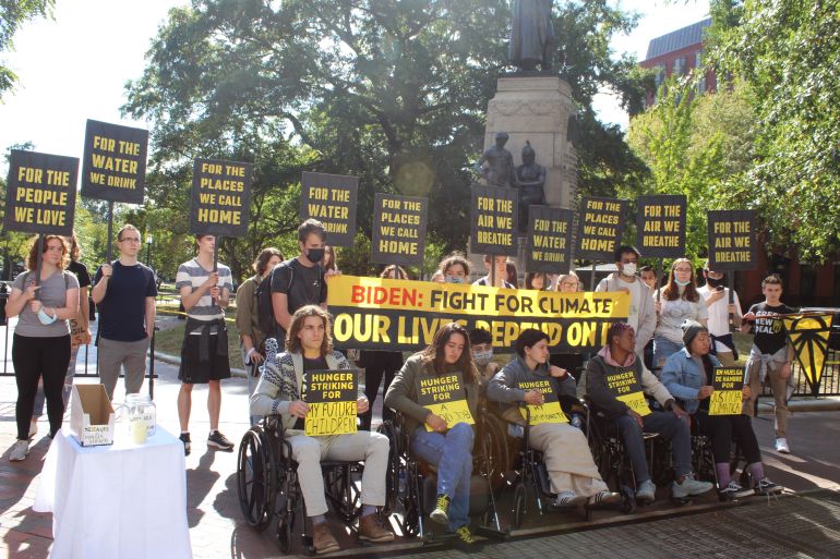 She and four other activists from Sunrise Movement, an environmental advocacy group, began their protest on Wednesday. They say they will not eat until President Joe Biden follows through on his campaign promises to enact meaningful measures to cut greenhouse gas emissions and transition the US to a green economy.