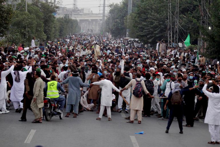 The violence happened on Friday after thousands of members of the far-right Tehreek-e-Labiak Pakistan (TLP) party launched their “long march” from the city towards the capital, Islamabad, demanding that the government release the leader of their outlawed party.