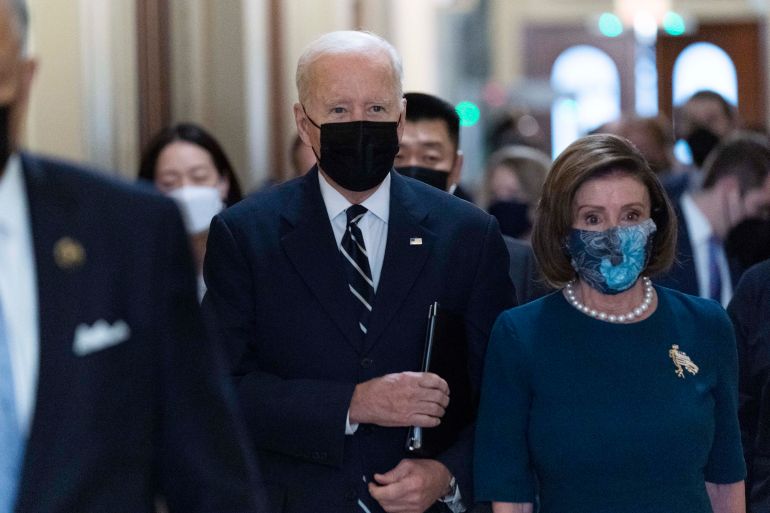 Biden spent Thursday morning meeting with legislators from his party on Capitol Hill, before he announced he had the support needed to pass his framework for a $1.75 trillion of social services and climate change programmes, whittled down from an initially proposed $3.5 trillion version.