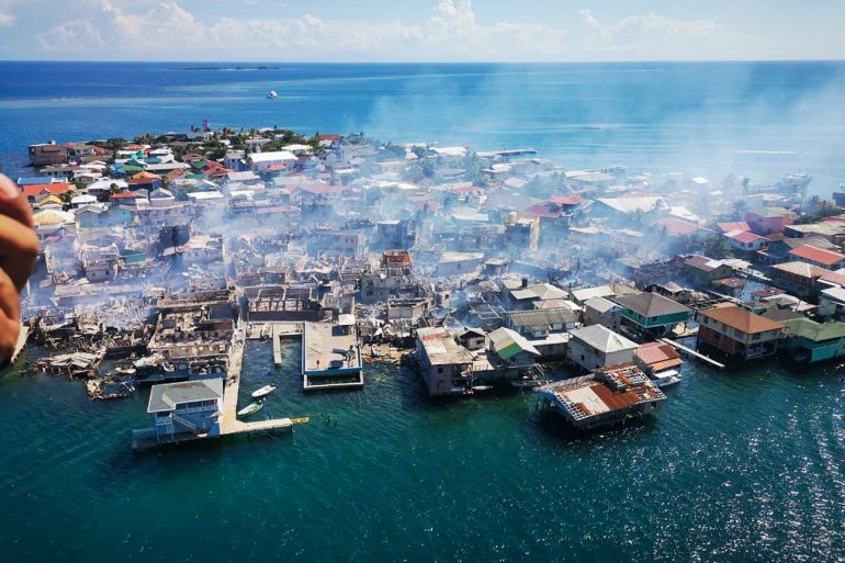 Dramatic video footage shared on social media on Saturday showed rows of seaside houses engulfed in flames and wooden homes collapsing on Guanaja, which is about 70 kilometres (44 miles) off the north coast of Honduras.