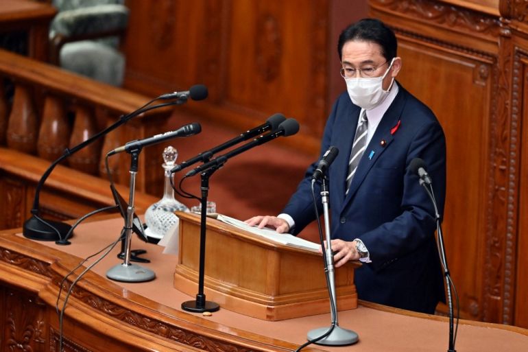 Fumio Kishida also pledges to turn around the economy while protecting the country’s territory in his first policy speech.