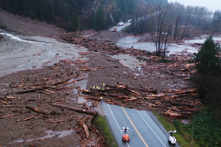 Federal Public Safety Minister Bill Blair on Wednesday said the military forces will also protect residents against further flooding or landslides. Military helicopters had already helped evacuate about 300 people from one highway where people were trapped in their cars overnight on Monday following two mudslides near the town of Agassiz, about 97km (60 miles) east of Vancouver.