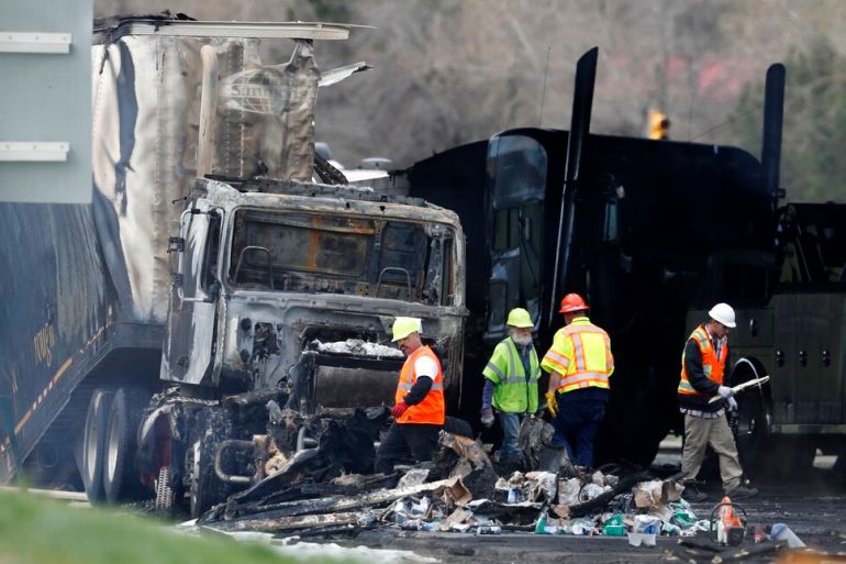 The truck ploughed into vehicles that had slowed because of another wreck, setting off a chain reaction and a fireball that consumed vehicles and melted parts of the highway.