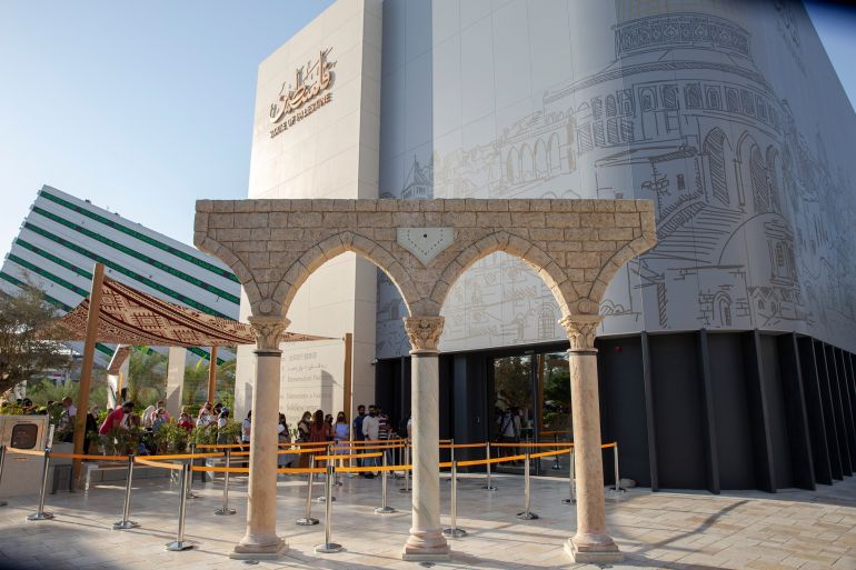 With limited references to Israeli occupation, pavilion organisers hope visitors see a ‘positive image’ of Palestine while promoting economic and tourism opportunities.