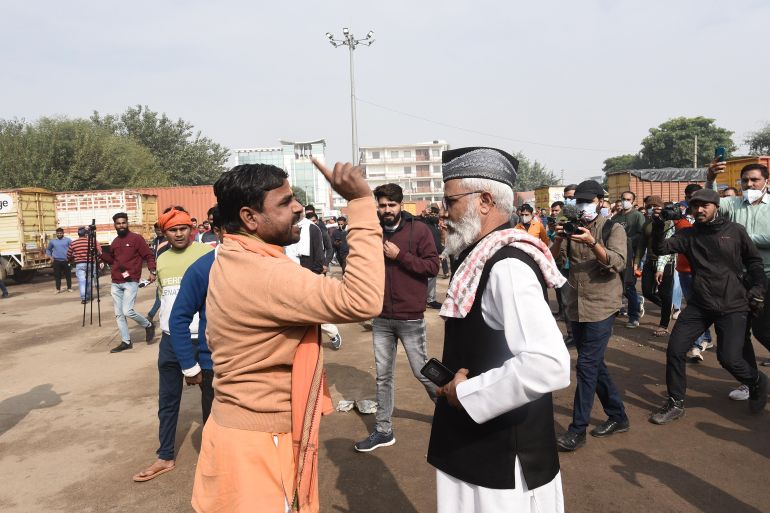 In a video that went viral last Friday, a Hindu vigilante named Dinesh Bharti was seen heckling a Muslim imam, identified as Shehzad Khan, saying in Hindi: “Namaz nahi hogi yahan (There won’t be any prayers here).” He was dragged away by the police and reportedly arrested later for instigation and disturbance of public peace.