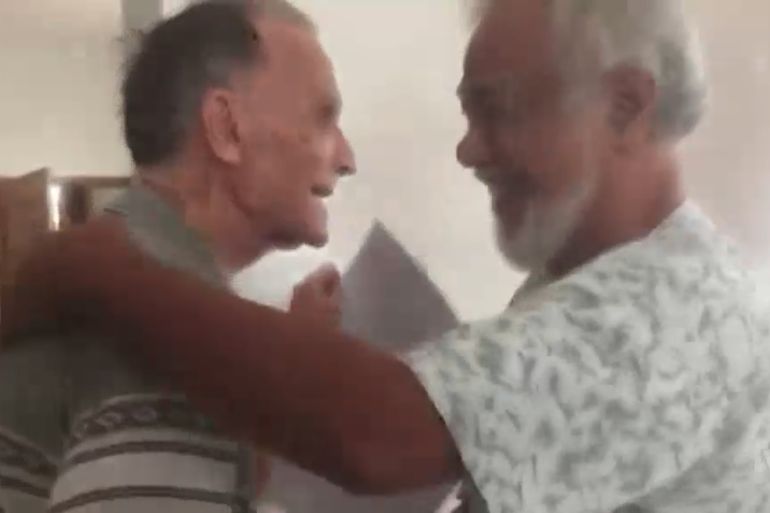 In a video taken at the meeting, which was covered by local media, Gusmão, also a former prime minister, is seen hugging the former priest and feeding him cake.