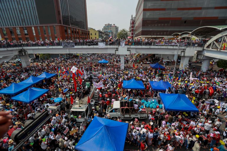 In the country’s largest city of Yangon, protesters also started pouring into the streets, with student groups and workers from different ethnic minorities also expected to join the crowds.