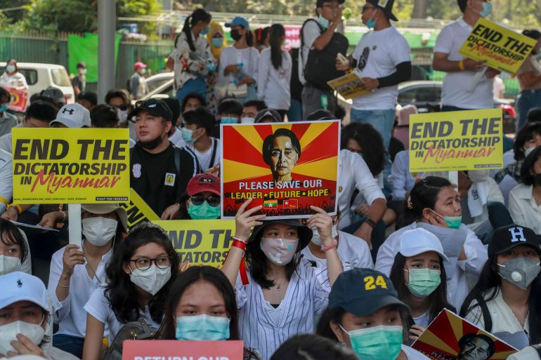 Groups from Myanmar’s different ethnic minorities also came out onto the streets of Yangon, Myanmar’s biggest city, on Wednesday.
