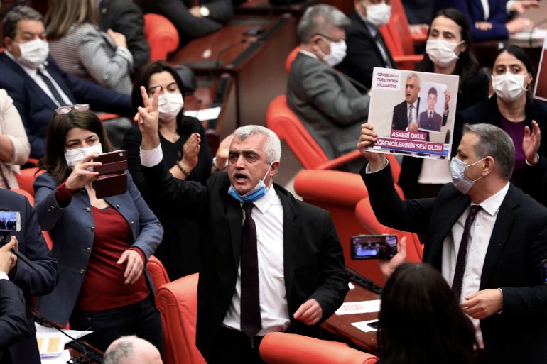 The move to expel Gergerlioglu triggered a raucous protest in the assembly hall, with HDP legislators banging on desks and accusing Erdogan’s governing party of an assault on democracy.