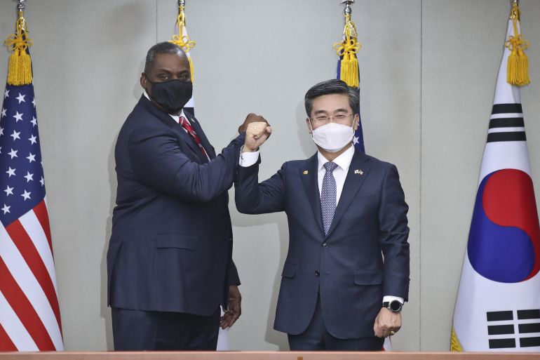 Meanwhile, Austin, speaking to reporters before meeting his South Korean counterpart, Suh Wook, called the US-South Korea alliance a “linchpin” for peace, security and prosperity in Northeast Asia, and for a free and open Indo-Pacific region and beyond.