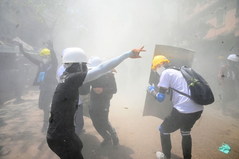 In the town of Lashio in the northern Shan region, police on Sunday fired tear gas and stun grenades, according to a live video on Facebook.
