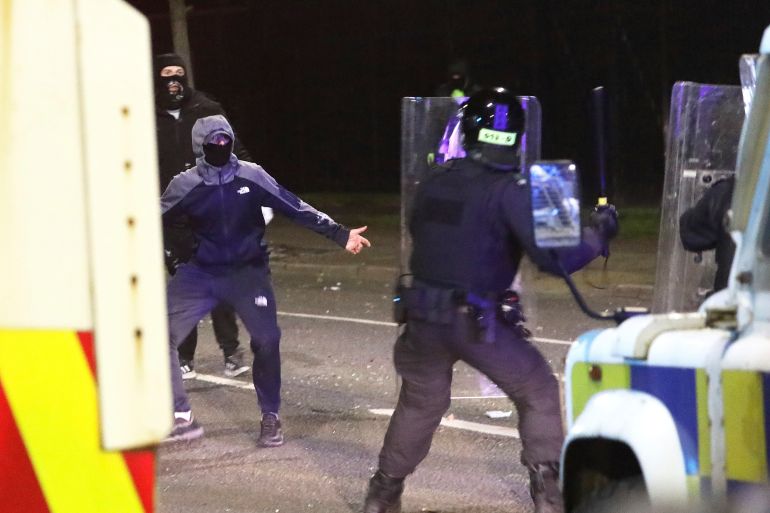 Days later, a loyalist protest of 100 people in an area of South Belfast on Good Friday quickly descended into violence, with petrol bombs being thrown and police officers injured.