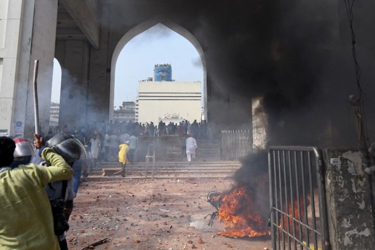 In the capital Dhaka, they clashed with police outside the country’s main Baitul Mukarram National Mosque during the visit.