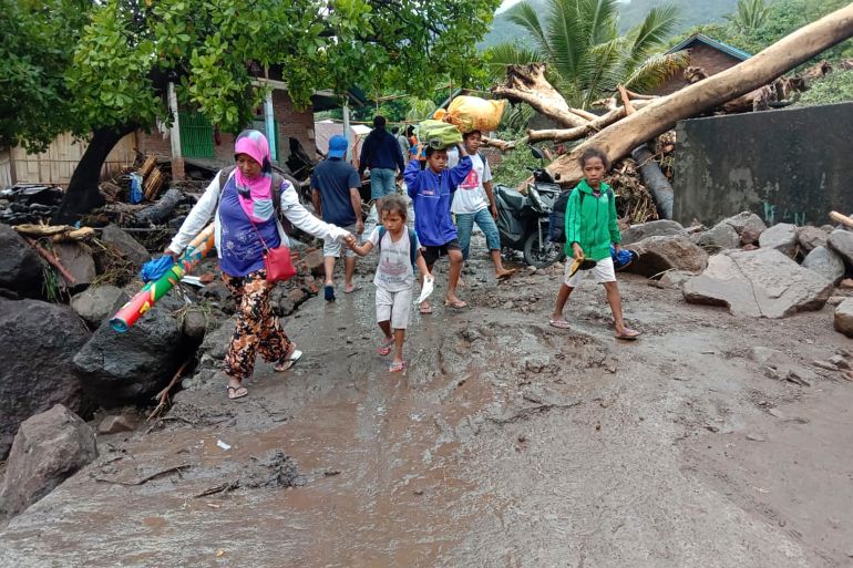 In Indonesia’s remote East Flores municipality, mud washed over homes, bridges and roads, while strong waves prevented search teams from accessing the hardest-hit areas. On Lembata, an island east of Flores, parts of some villages were swept down a mountainside by torrents of mud and carried to the shore of the ocean.