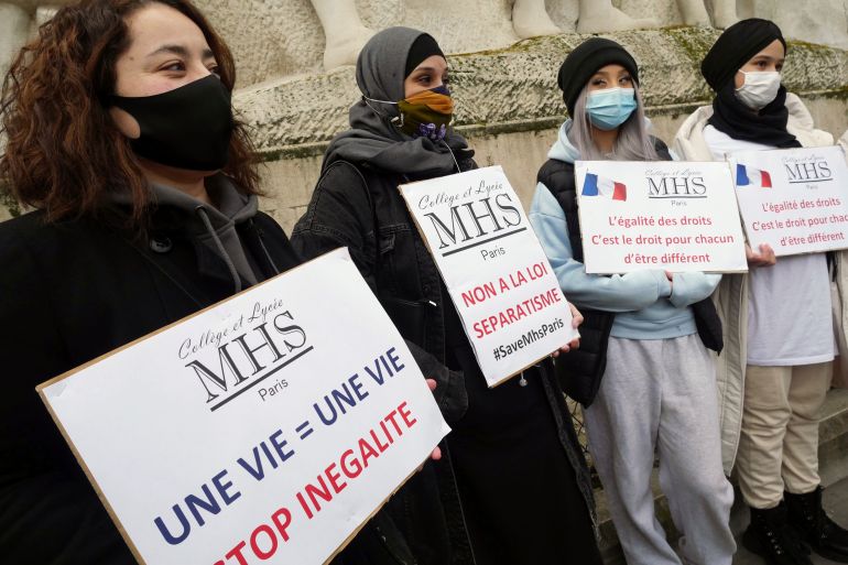 The law does not specifically mention the word Islam, but French Muslims have for months protested against it, saying several of its measures single them out.