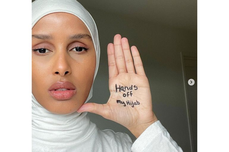 Somali-Norwegian model Rawdah Mohamed responded with a viral Instagram post criticising the proposed ban with the phrase “Hands off my hijab” written on her hand, saying in the photo caption: “The only antidote of hate crime is activism.”