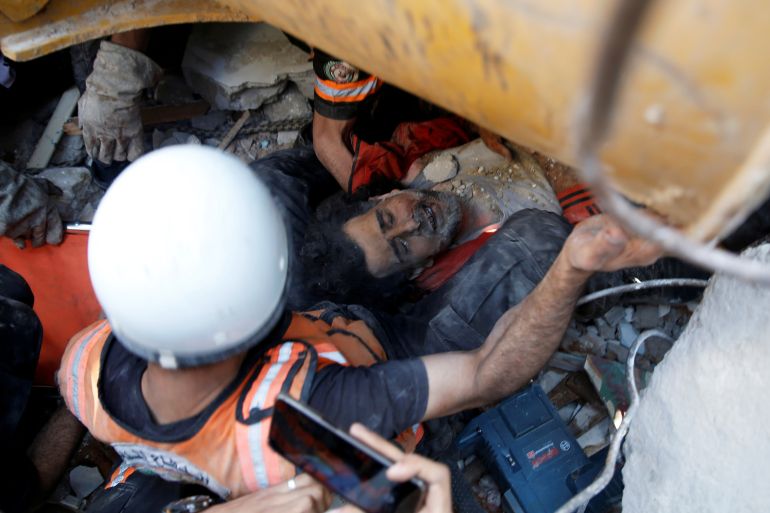 As rescuers struggled to pull victims from the debris of destroyed buildings, many of those rescued could not reach the hospital as the main road leading to al-Shifa – the largest medical centre in the Gaza Strip – had been hit as well.