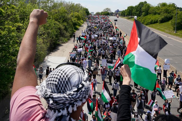 Protesters also gathered at the Dearborn Police station and at the American Moslem Society mosque in Dearborn and marched through residential neighourhoods.