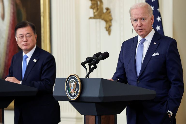 Separately, Biden and South Korea’s Moon said the US and South Korea would seek to engage North Korea diplomatically over restraining its nuclear weapons programme.