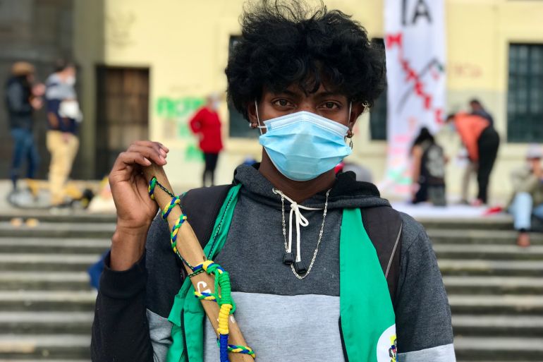 Protester Miguel Ángel Chávez, part of the Guardia Cimarrona, an Afro-Colombian organisation created to protect their ancestral lands, has taken part in the demonstrations since they began.