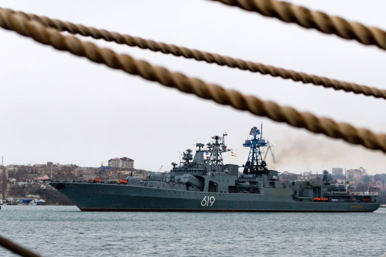 Kulishov told Russia’s RIA news agency that Moscow had demanded the vessel immediately leave its waters, to which the warship’s captain replied there was poor signal reception.