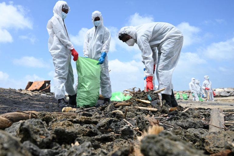 Sri Lanka’s Marine Protection Authority (MEPA) said the plastic waste from the burning ship had probably caused “the worst beach pollution in our history”, and warned it could cause years of ecological damage.
