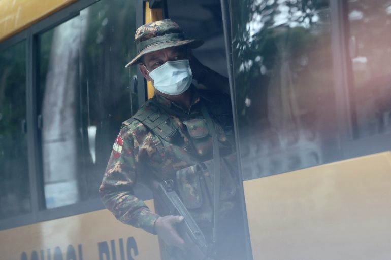 Images from the first day of school posted on social media showed armed soldiers at school gates, on buses and even in the classrooms, with some apparently encouraging young children to hold guns.
