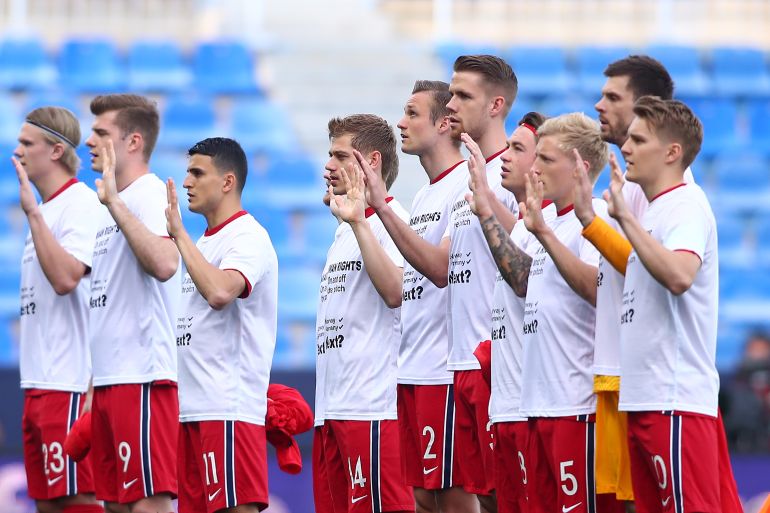 Before recent games, Borussia Dortmund star Erling Haaland, captain Martin Odegaard and their teammates wore t-shirts with slogans like “HUMAN RIGHTS On and off the pitch”.