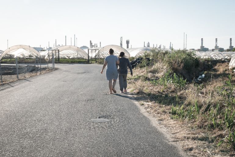 Huelva, Spain – It is mid-May and the hot air is filled with the sugary scent of strawberries mixed with fertiliser as Jadida*, a Moroccan woman, walks on the side of the road, a farm behind her. A large pair of sunglasses covers her face, almost entirely. Greenhouses surround her as far as the eye can see.