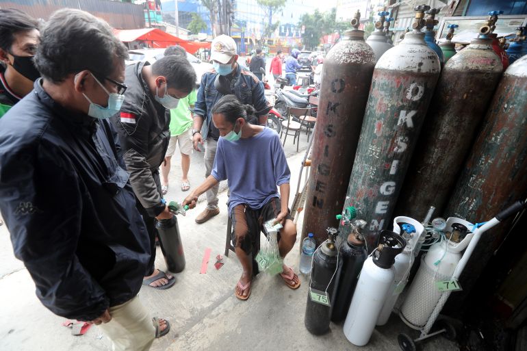 ‘Dying in their homes’: COVID-hit Indonesians scramble for oxygen