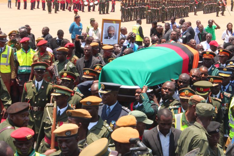 Zambia declared a period of mourning after his death, with flags flown at half-mast, while his body was taken around the country for the public to pay their respects.