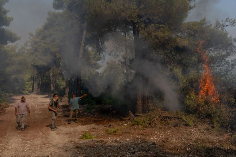 “We had no help,” he said, a scarf wrapped around his face as he walked through the smoke. “The state doesn’t care about the trees and many people live from this forest and the resin.”