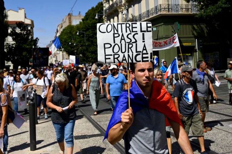 Thousands of people have marched in cities across France to protest the COVID-19 health pass that is now required to access restaurants and cafes, cultural venues, sports arenas and long-distance travel.