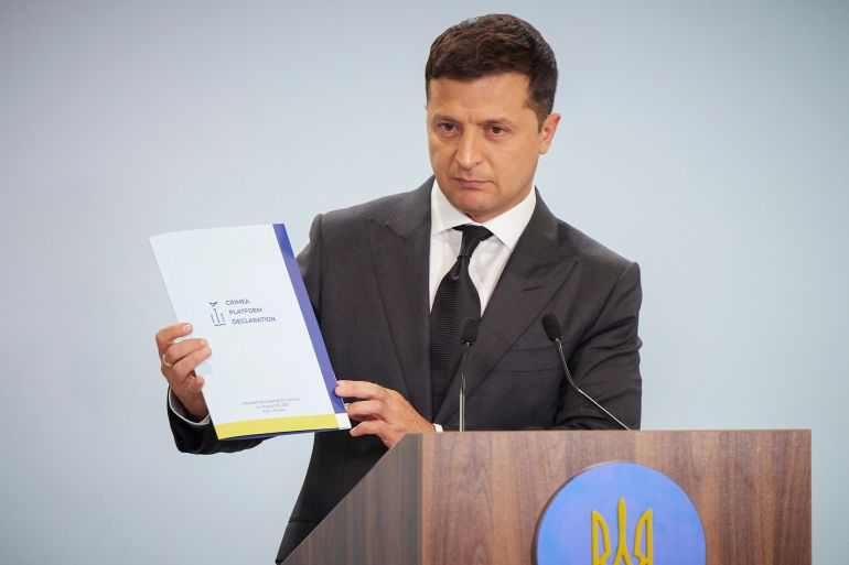 Speaking on Monday at the Crimean Platform, a summit in Kyiv designed to keep international attention focused on Russia’s 2014 annexation, Zelenskyy said Ukraine would use “all possible political, legal and first and foremost diplomatic means” to pursue its goal.